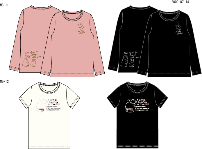 半袖プリントTシャツ・長袖刺繍柄Tシャツ1デザインずつ、
