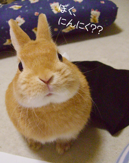 ←ほら。顔が思いきり下膨れで丸くて、耳がちゅんと上に出てる感じが…。これで耳を真っ直ぐにそろえてたら本当ににんにくシルエットですよ。