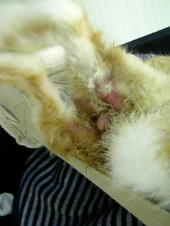 暖のお股、尿焼けで毛が抜けて皮膚に赤み(炎症)が見られ始めました。