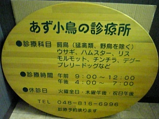 あず小鳥の診療所っていう名前で、南浦和に7月4日オープン予定!
